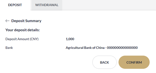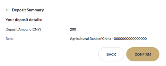 - Click Confirm to be redirected to crypto transaction page or click Back to change your deposit amount (Make sure to enable pop – up window) Note: The exchange rate stated is indicative. The actual rate and amount credited can only be determined after submission of the transaction.